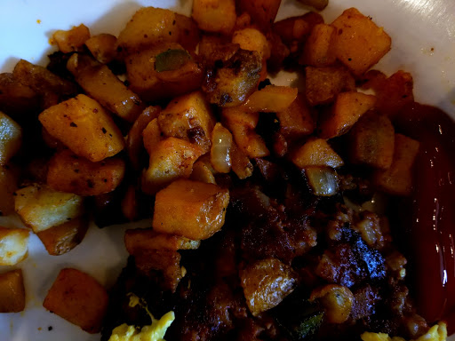 The food was satisfying. I had 2 eggs scrambled with bacon, potatoes, and toast. The eggs and potatoes were good. Nothing spectacular. Just satisfying. If you want breakfast, this place will give you good breakfast. The staff is friendly too. I liked it. Would come again.
