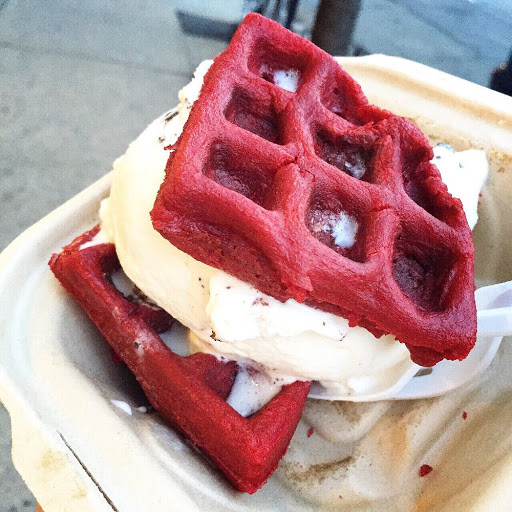 Fun and inventive ice cream flavors! You cant miss the red velvet waffle ice cream sandwiches! I dont think people should be allowed to make waffles any other way. Its a small venue so dont expect to sit and enjoys your dessert. I think there were only two chairs. Friendly staff, though. Theyll show you a good time.