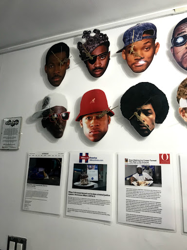 The design of the ice cream shop was pretty unique. We went later in the day so they were out of a lot of flavors. Everyone who work there was really friendly and they wont let us try a lot of the ice creams. We got the chocolate one, the mint condition, and the drago. The chocolate one wasnt as heavy as a lot of chocolate ice creams but was delicious with three type of chocolates. The mint condition tasted like actual mint and not the fake minty flavoring. The Drago had Caramel ice cream with red velvet cake pieces and some nuts and coconut. It was really good and super tasty. Also it looks like you can get freshly made waffles with your ice cream! Yum Check out the super cool clock on the wall.