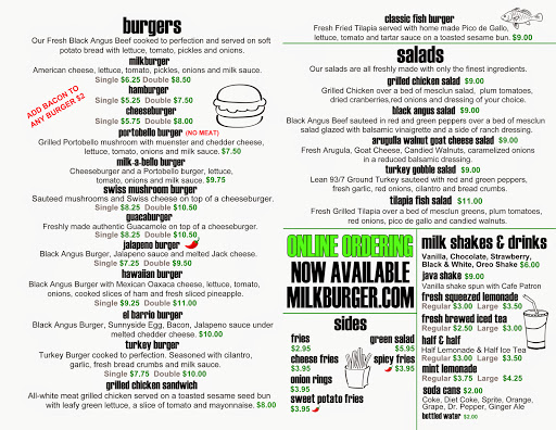 The burgers at Milkburger are great, cheese fries are also very great along with their tasty milkshakes. The only problem is the size to price ratio. The burgers are way too small to be paying $12 plus for. Its been a while since I ordered from here but I know I will. If youre in Spanish Harlem and are looking for a place to eat something thats not fast-food then Milkburger is your place.