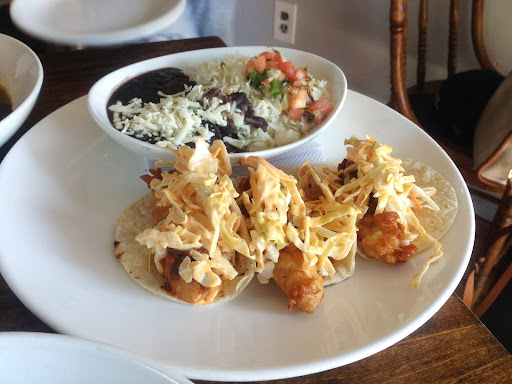 The dimly lit interior is nicely decorated with what feels like authentic Mexican decor. They have the most gorgeous bottles of tequila on display at the bar. The staff is very friendly and attentive. The menu is deceptively simple and sparse--soft shell tacos and other Tex Mex staples. Everything Ive tried here is very good--a few notches above most Mexican restaurants in the area. I recommend the fish tacos. The guacamole has a nice kick to it, and they even garnish it with pomegranate seeds. Their mango margarita is perfect--not too sweet and the mango flavor is strong. This place attracts a nice crowd of locals and tourists.