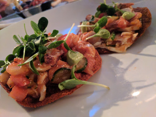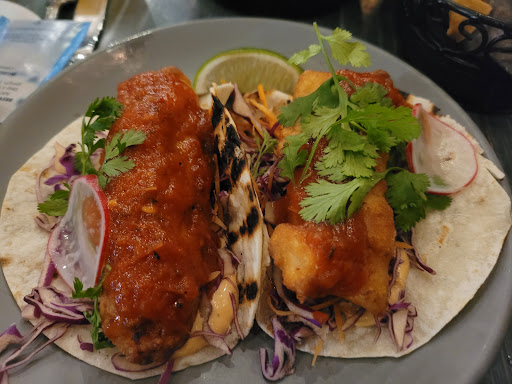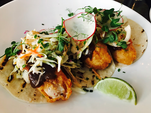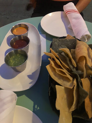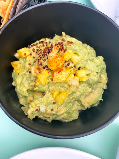Best guaco Ive had outside of Mexico - chunks of avocado loaded with fresh cilantro , tomatoes cubes and radishes with unbelievably good tortilla chips - where do you buy these amazing chips ? Fish tacos was a highlight but also enjoyed the cocktails , sociable atmosphere and ceviche. Price is moderate