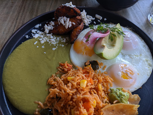 This is not your typical brunch spot with calm Sunday-afternoon toast and jam kind of feel. This is a hip bar-esque Mexican brunch place loud with music and people talking. The waiter service was pretty good. The host seemed a little preoccupied when my friend and I entered and wasnt very friendly, but he made up for it later by coming over to ask if everything was going well. Our waiter was awesome. She was friendly and pleasant to speak with. The food was quite good. Imagine typical brunch food items like potato hash and eggs benedict except with pork and avocado and other Mexican twists. To be honest, it wasnt the Sunday brunch I was looking for but I was pleasantly surprised.