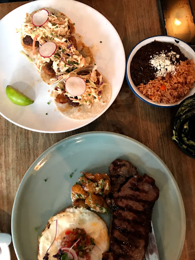 An upscale Mexican restaurant, reasonably priced with a fairly relaxed atmosphere. The food is very good. The vegetarian tacos with lentils were great, the vegetarian nachos were amazing and the ice cream with chocolate fudge was excellent and had a touch of spice to it which made it unique. Pro tip: make a reservation as it can get crowded after 6 pm even on a Monday!
