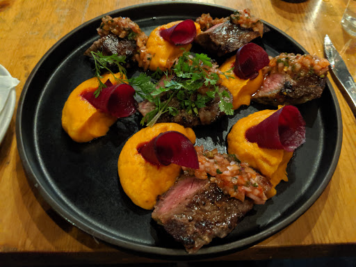 This Mexican place manages to be buzzy but low key, low lit but spacious, friendly but cool, all at once. Very cool decoration, all black painted pipes and skull masks, married with lovely staff and a short but sweet menu. $6 is a bargain for a powerful prickly pear margarita (in 4-7pm happy hour) and my fish tacos were perfect; soft limey fish, sharp mayo, and wrap - beautifully moist flan for pudding, too.