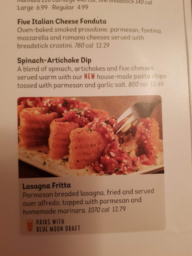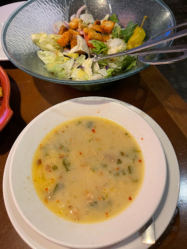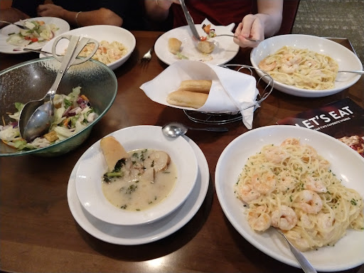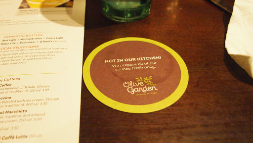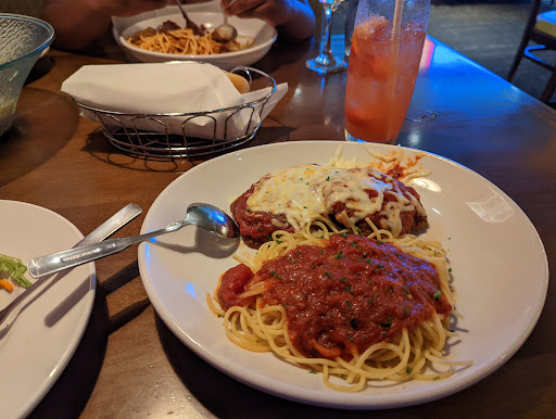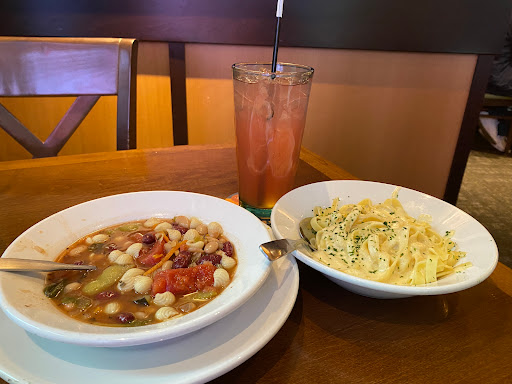 Liked the chicken gnocci soup, and the marinara sauce was reasonably good. Service was good too. Unfortunately, the chicken parm tasted primarily of salt. Very thin breasts from what I can only assume were from some lost tribe of pygmy chickens. The minimalist smear of marinara under an only slightly less miserly layer of melted cheese did little to mask the over salting of this dish, and the flavors of neither the sauce nor the cheese were apparent in the slightest. The artichoke fritte were obviously made from canned "mairinated" artichokes, and tasted heavily of the "marinade", and not at all of artichoke. Well cooked, but pointless from a taste perspective. And even though the sauce was good, my meal was served without nearly enough, on either the chicken or the pasta side. Call me crazy, but unless your pasta is freshly made, it is primarily meant as a vehicle for your sauce. It has been many years since I last ate at an Olive Garden, and after this reinforcement of those old experiences, I will not be back again.
