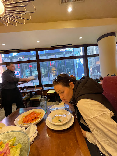 Das Olive Garden am Time Square hat natürlich eine hervorragende Lage, aber vom Preis her ist es hier relativ Günstig. Da wir diese Kette schon aus anderen Bundesstaaten und schätzen sind wir hier hinein gegangen. Das Angebot zum Luch mit all you can eat soup & breadsticks hat uns angezogen. Die Suppe war eine Minestrone und hat wie immer bei Olive Garden sehr gut geschmeckt. Das Restaurant ist sehr Sauber und das Personal freundlich und hilfsbereit.Wir hatten einen Fensterplatz ergattert, so konnten wir das treiben rund um den Times Square in alle ruhe beobachten und genießen. Ein Besuch bei Olive Garden, egal wo, rentiert sich immer !