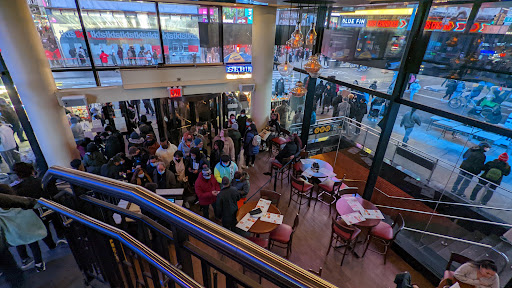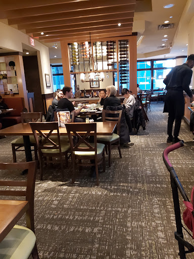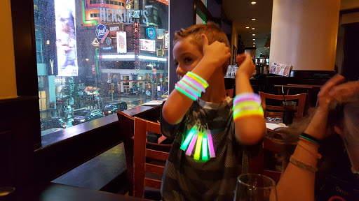 Nous sommes allés souper au Olive Garden Times Square un samedi soir et nous étions 16. On se fait dire quaucune réservation nest possible mais le jour même on semble pouvoir nous accommoder et on se fait dire dêtre là à 19h30. À lheure, surprise!, les réservations ne sont que pour 17h30 (!?). Bref, on nous donne un buzzer pour quand une table se libèrera. On a prit un verre (sangria à la pêche dans mon cas, excellente!) au bar en attendant. Je pense que ça la prit environ 30-45 minutes avant davoir une table mais je passais un bon moment alors ça ma paru court. Jai adoré la trempette 5 italian cheese en entrée, celle au spinach et artichoke était bien aussi. Les fried mozzarella très bon ! Les morceaux de pain et la salade quils fournissent sont bons également. Comme repas le Steak Gorgonzola-Alfredo était très bon aussi! Jai goûté au dessert Black Tie Mousse Cake et cétait miam! Je retournerai certainement à ce resto à ma prochaine visite à NYC !