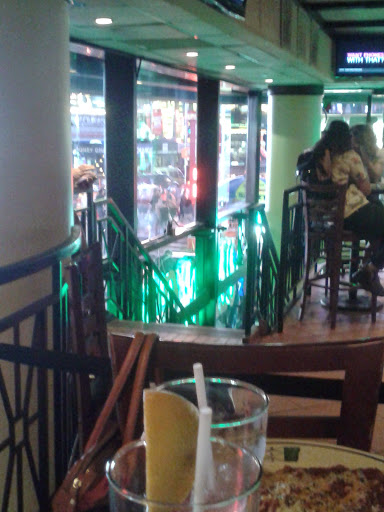 I usually have lower expectations for restaurants located in the epicenter of tourism; however, this Olive Garden left me pleasantly surprised. The place was packed with people on this rainy Saturday evening. Surprisingly, it was only a 15 minute wait before we were seated at our table for two on the 3rd floor. There were large windows that gave you views Times Square from every angle. Depending on where you are seated, you may have a different experience. Overall, the place was clean and the table turnover was at a steady pace. It took about 5 minutes after we were seated for our waiter to great us (longest 5 minutes ever). The waiter was great though. The food was also great and the portions were decent. We ordered a Filet Mingnon with Pesto sauce and vegetables that came with side garden salad as well as an Oven Baked Tilapia Parmasian with mashed potatoes and a side Turkey and Potatoe Soup... YUM! For two entrées, one soda and one 6oz glass of wine, our total was about $76 which included their 18% gratuity. Look out for that at the bottom of your bill so you dont tip them double!