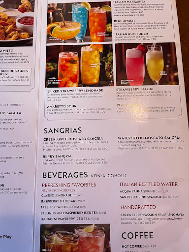 Visited Olive Garden with few friends and tried out their new menu. Few things are worth mentioning here before I start writing about the food and drinks. This Olive Garden definitely knows what good customer service is , from start to end the staff was just uber awesome. They put in so much effort in making everybody comfortable and at ease. Staff was super friendly, fun and engaged with all of us. This goes for all of them right from the floor managers to the servers , staff kept on coming back to check on A big high five for that. The portions were very very and again very generous. Here is the run down of the menu - *Risotto Bites *Polenta Shrimp alla Greca *Calabrian Wings *Roasted Tomato Caprese Salad *Smashed Chicken Meatball Sandwich *Garlic Rosemary Chicken *Bucatini with Spicy Three Meat sauce and Sausage meatballs *Chicken Abruzzi *Grilled Chicken Butternut Squash Alfredo Fettuccine *Pappardelle Pescatore *Pumpkin Cheesecake My favorite few from the menu were the wings, risotto bites, meatball sandwich and alfredo fettuccine.They did a great job at describing each dish.The wings were spicy but not super spicy. Coming to drinks I had the mango/peach smoothie and raspberry non alcoholic drink. My smoothie was super yummy which i repeated twice :) Since there was so much food we got to go boxes so we could enjoy our olive garden lunch next day. Seriously I would specially make a trip down to this Olive Garden location to enjoy that great hospitality of the staff and nice food. Keep up the good work guys!!