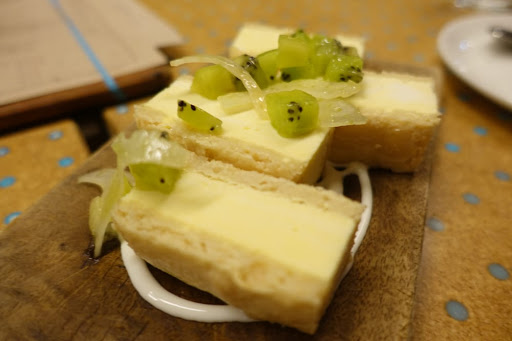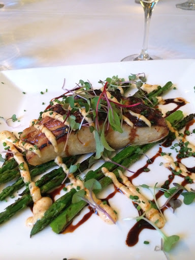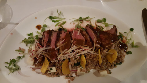 "Lunch: good business meeting spot. Service was prompt and polite, and appropriately unobtrusive (unlike a place, say, like 44 & X). The fluke was nicely browned but the ""truffled boniato puree"" was tasteless. Not bad; just didnt add much. The roasted corn vinaigrette had a bit more flavor, and the crispy jalapeño had a delicate coating and was fun to eat."