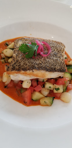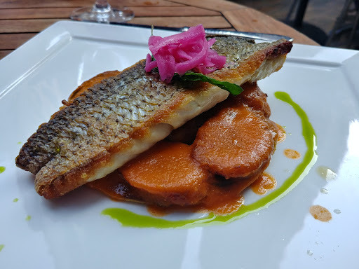 Greeted by a polite hostess who kindly offered to stash my roller blades in the closet (no snobbery); charmed by a small staircase that took me to what felt like a cozy eatery in Barcelona; impressed with the speedy delivery of the octopus & chickpea appetizer and even more pleased with the quality of the sauvigon blanc. Im usually not one for a frozen margarita - but for the margarita pampano - the signature hibiscus cocktail, Ill make an exception... The red snapper & sea bass - delicious; asking myself... when is another occasion to go back?