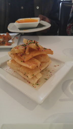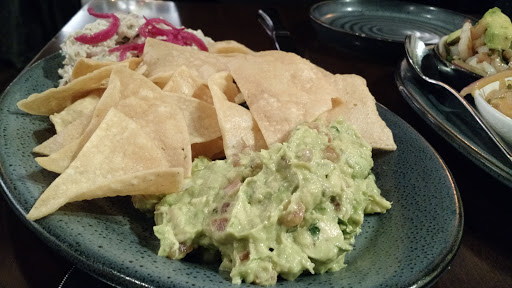 Think Taco Bell, but add fancier plates, a booze selection, and a piece of property in Midtown that costs more than sending three kids to private school. Okay, maybe that was a little harsh, but the food was not particularly impressive nor innovative (a lot of gratuitous adjectives in a restaurants menu doesnt make the place more luxury-oriented or, more importantly, tastier). The pork dish I ordered was very dry and the sides of rice cake and stringy greens was a pretty floppy culinary attempt at "upscale Mexican," which is how this place advertises itself. I will say that their drinks menu was very well done. This was my first time trying a tequila flight, basically a beer sampler but with the obvious replacement and a lot... faster-acting, if you will? In all seriousness, they had a diverse tequila and wine selection, and the waiters were all very friendly when you asked them about the menu. The décor also created a warm and tropical ambience, with banana-leaf inspired fans that rotated slowly on axels stretching across the ceiling and a separate bar area on the floor below the main restaurant. But the whole time as I was eating my entrée, I couldnt help but think... "Man, I could get so many orders of cheesy fiesta potatoes for half of what Im paying for this dressed-up pork chop."
