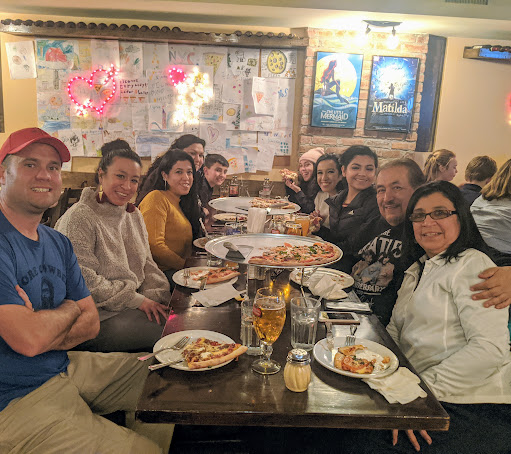 A principio de noviembre fuimos a NY , a correr la maraton , nos alojamos en el hotel Belvedere justo al lado , la pizzeria es un sitio muy familiar, la comida es buenisima ,las pizzas , la pasta ( incluso gluten free), la carne... Todo genial, ibamos con un bebe de tres años y nos preocupaba que no comiera bien pero incluso nos hacian platos especiales para el.Lo mejor son sus trabajadores , muy serviciales y simpaticos y el jefe tambien :)