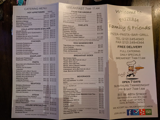 我们通过看点评找到了这家餐厅。离我们的酒店非常近。餐厅很古雅,超级棒!食物不错。我们共7个人。圣诞节7个人的群体在纽约很难找到位子。 Patzeria 的员工很棒!我们看到他们餐厅提供英式早餐,所以我们来这里觉得试一试!晚餐也同样很棒!店主在店里,他人很好,很友好。强烈推荐这家餐厅!