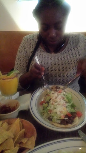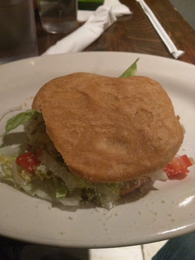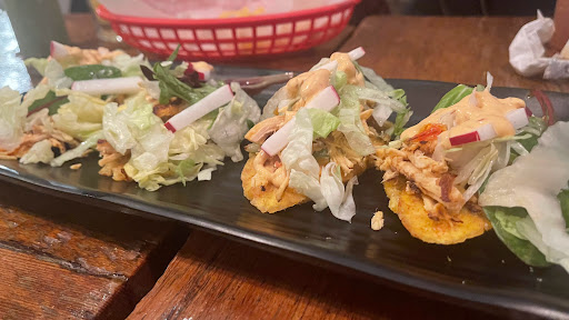 It has a B grade, food has no arrive, dont know the prices, ask for substitute was told the food come prepared, dont get why have to wait 30 minutes food has not arrived yet. Daughter finish chips. It looks like a dungeon, can see electric and cable all over, music too loud, its lunch time, only playing rock. I not been served yet. Owener is from Ecuador, server are Mexican, Dominican and Ecuadorian. Food arrived 35 minutes later. I ordered a Chimichurri. Chicken dry, a lost of luttuce. $8.00. They dont write it like that, its just an 8.