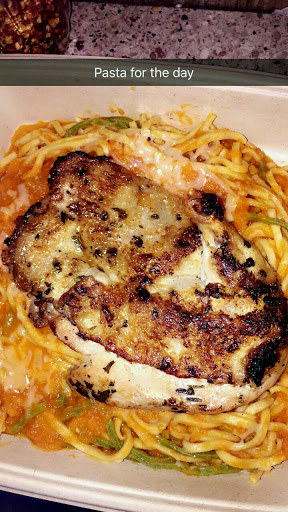 Definitely coming back here! I recently got a groupon deal for this place. im little hesitant when Im using groupon as some restaurants are not too welcoming when ordering with groupon deals. However, the staff at the cash register and manager were extremely friendly and accommodating. He asked me how I found about this place and I told him I saw the place on groupon and reviews on yelp were good so I wanted to try pizza and chicken Milanese. He said they try their best and I have to agree with him and the yelp reviews!! I ordered two Milanese chicken and mushroom and saw-seech personal pizzas. From ordering to picking up my food it took about 15 minutes. The pizzas were amazing and I want to try other flavours. The toppings were generous and fresh. The chicken Milanese portions were huge as it came with a side. I got zuchini marinara and spaghetti pomodoro and they were huge portions too and the pasta sauce was amazing!!! Pros - friendly staff Tasty and Fresh food Inexpensive and huge portions Not salty Free lemon infused water Cons - system was down when I went Minimal seating space so take out is preferred