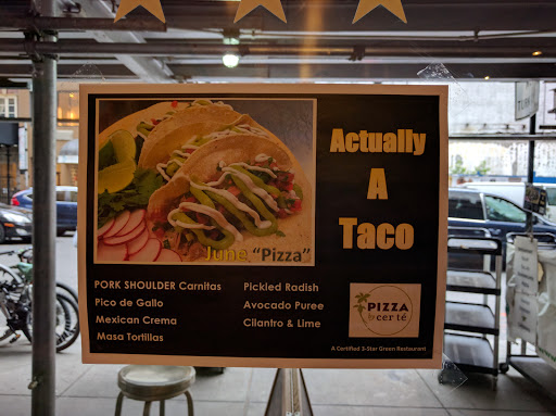I crave their pizza. Im a native New Yorker who loves her pizza. This is by far my favorite slice. When in the neighborhood I cant help but come by and get a slice...then a second. The salads, homemade pastas, soups, gluten-free pizza and other entrees are also really good, but when here I cant seem to pass up the pizza. The staff regulars are lovely, especially Ashely. I also appreciate that they provide complimentary infused Alkaline water. Plus Pizza by Certé is a Certified 3-Star Green Restaurant. Come and support this wonderful local gem!