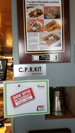 Great artisanal pizza in Midtown East. This is a tiny pizzeria that offers pizza, sandwiches, salads, and pastries. The pizza is thin crust, often sauceless, sometimes gluten free, and totally not NY style at all. Its almost gourmet. They like to be organic. They even have an herb garden growing out of the wall. Pizza by Certe is also eco-friendly using recycled plates and what not. My favorite is the Farmers pizza and mushroom. Slather it with garlic olive oil and tons of red pepper. Spicy, fresh, and delicious.