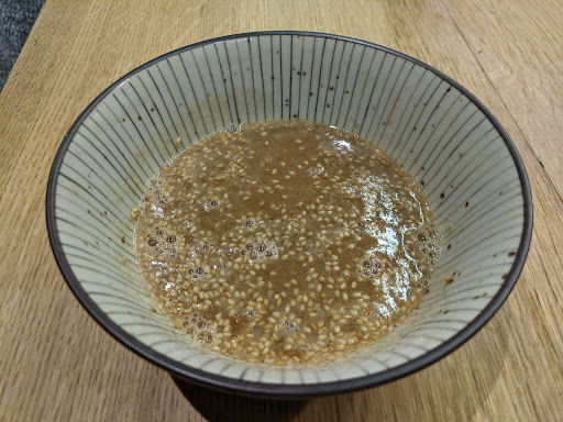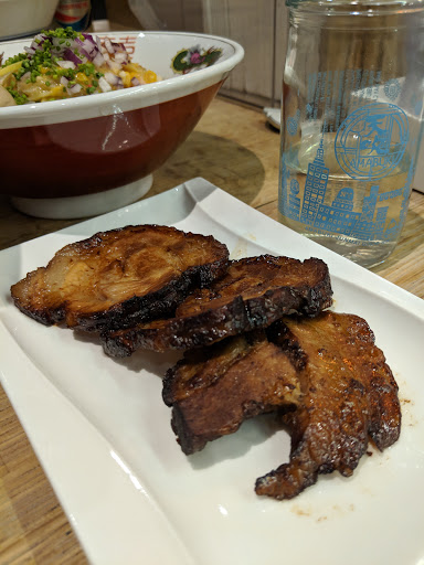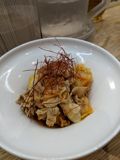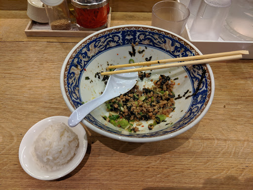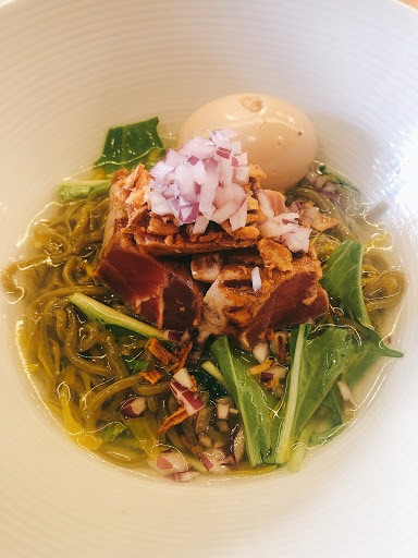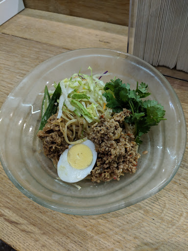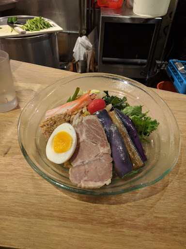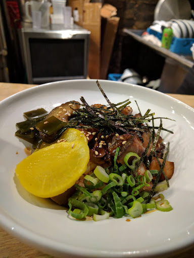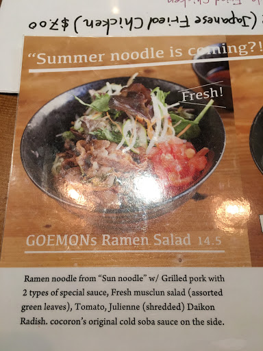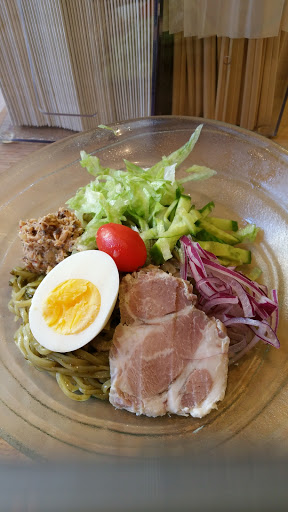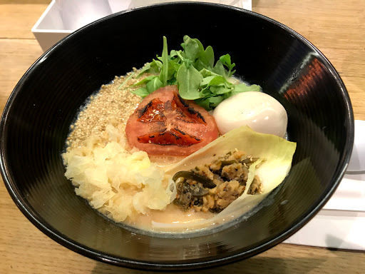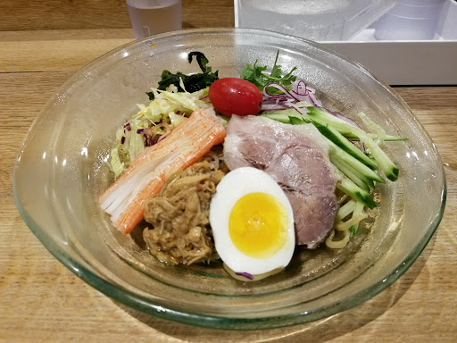 Ramen Lab is a pretty cool concept. It is a pop-up kitchen in which each month a different well-known chef showcases their ramen creations. Therefore, it is difficult to give it a star rating since the menu changes every month. For this particular visit, Id give it a 3.5 stars. I went here during Chef Naoka Miuras month (August 2016). Her ramen theme was HiyaChu, which is short for Hiyashi Chuka, a cold ramen dish typically eaten during the summer. I went with the Green Sauce Hiyachu. It is green onions minced into a pesto-like sauce. The sauce had good flavor and the noodles were cooked just right. I didnt care for the sliced pork or the minced tuna. It was flavorless and didnt add much to the dish. I prefer ramen in broth. Its a really small place. Theres a counter and you basically stand while eating the ramen. They have stools in front of the store if you really have to sit, but then the place would be even more cramped. Not a good place for big groups or families with young children.