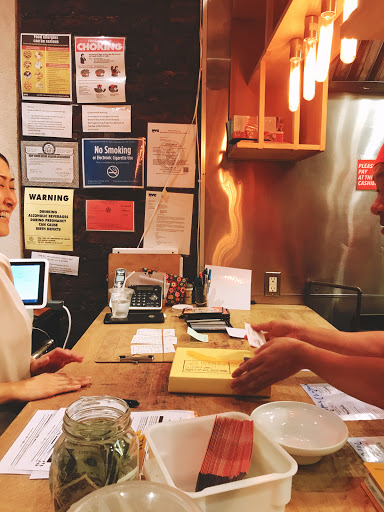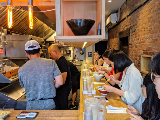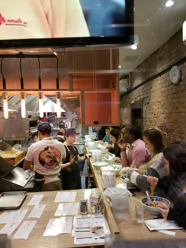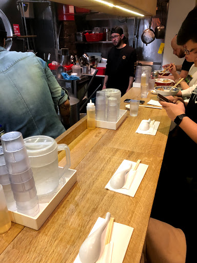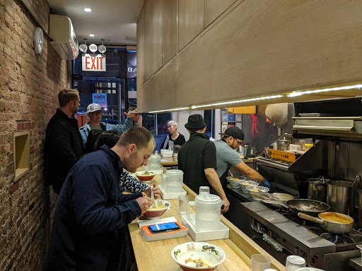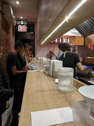 Hype is just a hype. I would give it a 3.75 if I could. The place is super tiny as many others have said. 10 seats and for a party of 2 on a Friday night we waited about 2 hours. That feels much longer... In the freezing cold. My friend and I were already so hungry that we went next door to defrost a bit and have our "first dinner". There is no room to even stand inside. The staff was accommodating and did their best to keep their customers happy, so seriously dont give them crap when you miss your name being called. When she says "about 30 min" dont come back 30 min expecting your name still there, you never know with these things so its best to be there. Since the 2 hour wait is really a wait, do NOT come around 9 and expect them to seat you or even put you on the list. They started turning away people around 9pm because they have to close around 10. Be respectful, dont be selfish. They are people too! When you finally go in, she asks you to look at the menu before you sit down. Theres basically two choices. One thats with the pork meat in chicken broth thats $13. The other one miso with just veggies. If you want to add an egg its $2... ! $1 for each 0.5 of the egg. But dang that egg is GOOD. My pork ramen was ssuuuuppppperrr salty. Its almost like eating air because I gobbled that thing fast. However, my tongue is destroyed by the amount of salt in it... Almost like drinking a light soysauce. I tried a bit of my friends veggie ramen. That one is also really salty but with some butter and hot paste added to it. It has a strong black bean taste and its thicker broth. Id get the miso one if I were to come back..... Maybe when its not 2 hour wait though.... All in all, go try it because of the authentic experience but definitely drink lots of water to remove that salt from your tastebuds! And 100% definitely get that EGG. Thanks, chef ! Also a fun fact: they serve their ice water in beakers !!!! Hehe.. Ramen... Lab... Lab.. Hah! OK Im good. Had to get that out there. Cash only !!!! Restroom in the back so you have to squirm through the 8 seats in the small area against the wall. There are hooks behind your seats along the wall for your bags and such. But dont be like me and bring a big bag to put against the wall that people get stuck along the way.... Hah! Dont even bother taking off your coat. Aint nobody got room for that.....! Youll probably still need to defrost from the cold regardless.....!!! Promise me you wont get frostbite waiting to eat this ramen. Please. Please.
