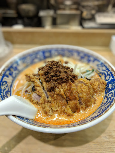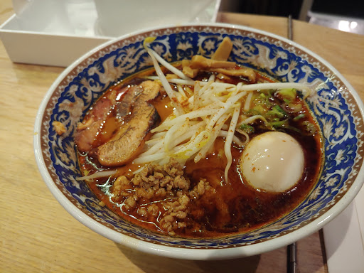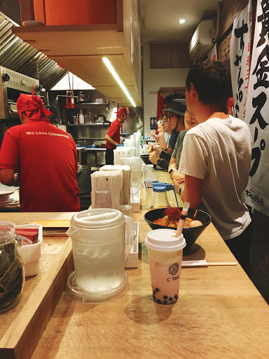 This place is just down the street from me. Every time I pass by, theres a HUGE line-up, no matter what the weather. I went a while ago when KENS RAMEN was in town (around November or so). LOVED IT. My cousin and I went quite early (basically right when they opened). We quickly got seated (or... standed?). There are too many standing locations -- I think 8-10. We were the 5th or 6th person; so it took a bit longer for them to make our ramen. The first few people quickly got their ramen. My cousin and I both ordered the paitan ramen, but they messed up my order by giving me the hell paitan. Thats fine with me. I kinda regretted not ordering the spicy one after I saw other people eating it. Despite it being SUPER spicy though, it was pretty amazing. Not only this, they were playing some bad ass beats the entire time. We also ordered the bun, but that couldve been skipped. Definitely will have to come back in the future to try more ramen from the different places.