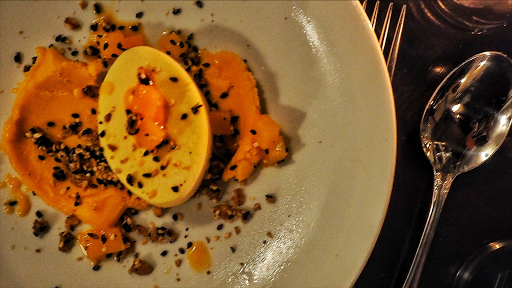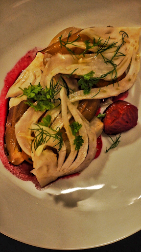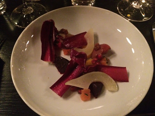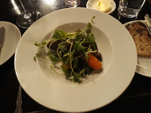 Food and wine were outstanding in quality - very tasty. It is known for the long wine list and it is indeed, very impressive. The food was not as creative as I expected - from the name, design and Michelin star but very refined and tasty regardless. The service was quite personable. There are two rooms - we were at the back and it has my preference as you can see the kitchen and I found it cozier.