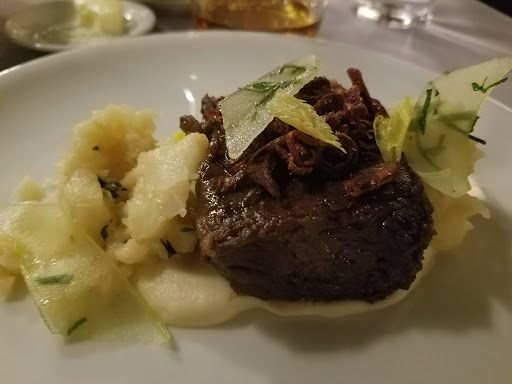 We went on a slow Thursday night, ordered the veal porterhouse, which I suspect is the flagship dish, and in any case is fit to be. It comes in a cast-iron dish, cooked perfectly, with potatoes the likes of which Ive never had. Starter oysters were very reasonably priced and tasty. Michael made great wine recommendations and offered a taste test. Fantastic service and wonderful food.