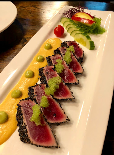 Amazing sushi, and great house-made dim sum and dumplings. Plan on coming back to try the rest of the menu. Love the design, pretty environment/ ambiance for a date night, night out or to watch the game.