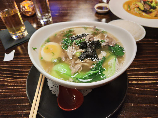 Duck Ramen! Pan-asian menu, can cater to many tastes. Nothing outstanding, though.