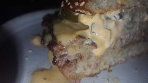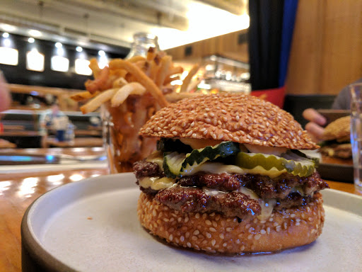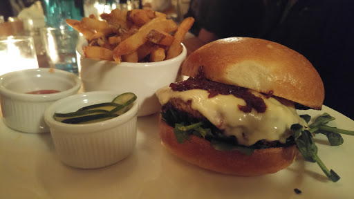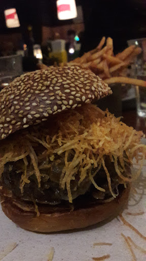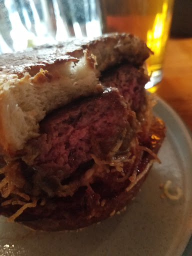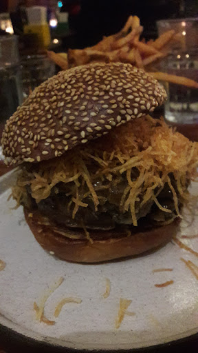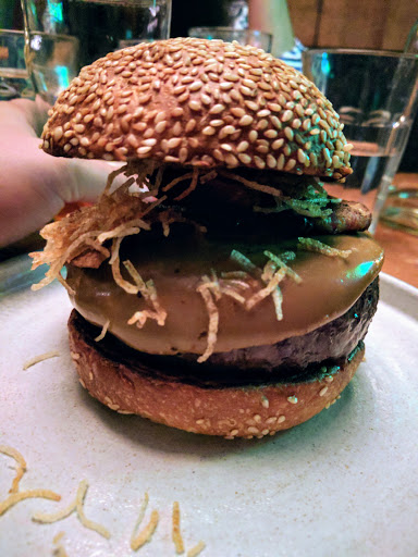 Im generally very disappointed at the burgers people rave about, especially from the place with a bunch of guys (I forget how many there are), the cabin that got shook, or even that burger jaunt hidden in the hotel. All disappointments and none of which trump what you can get at a good irish pub or alehouse. I saw the 1-stars, and I can sympathize with bad service, but I cant understand the comparisons to those fast food burger places, or why its okay for one restaurant to dictate exactly whats on your plate but not this one. I had the Salvation burger because if Im going to have a fancy hyped up burger, I might as well go with the namesake. I expected to be underwhelmed because I mean how good could a burger be, especially at $25. Turns out it was likely the best burger Ive ever had. The amount of effort to turn out the perfectly shaped patty alone, or the perfectly sesame studded bun probably makes the bespoke burger worth $25. Seriously, it looked like a work of art. I dont think food stylists go through as much trouble to make a burger look good. On looks alone I was impressed, and it tasted *better* than it looked. Ordered medium, it was the perfect reddish-pink medium; not grey, not red-rare, cooked through to a perfect pink. It left a puddle of red juice in the plate that I tried to sop up with the bun for each bite. I skipped the fries and opted for the dessert. The banana cream pie had slivers of banana glass, which is probably a pretty accurate description of it and frankly Im shocked, thats a liability waiting to go south on them. I ate it carefully since, well, it was called glass for a reason. I went late on a Monday (9pm) and the service was great (polite, upbeat, helpful, attentive, etc), but I went alone so I was seated pretty quickly at the open table area right by the hostess station. I can see how this place could get pretty hectic during prime time because of how freaking good everything can be.