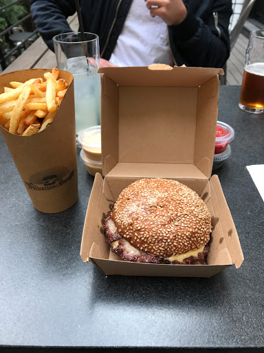 The salvation burger if you disregard price, service, etc. is worth 5 stars in taste a lone. Would I come back? Nah, and I would say is prob the same for most people. We were here on Monday night at 7pm, and there was no wait, and the restaurant was only about half full. It took about 20 minutes after we were seated for our waitress to take our order - we didnt even know who our waitress was when we sat down. Group ordered half salvation burgers, half classic. The Salvation Burgers were all med rare and it was DELICIOUS. It had some kind of wine sauce on top with these crunchy strings that were either potato or cheese (couldnt tell). The bun was great, everything held up despite it being a tall burger. Classic only comes medium-well or well done. The group ordered medium wells, but the patties were definitely all well done. The patties themselves were dry as hell, but had a good taste. Pickles on the classic were good as was the sauce. It was kinda like a fancy big mac. Except that it costs $17 and doesnt even come with fries. I mean, honestly Id choose a Five Guys burger over this ANY day. The only thing better about this burger over Five Guys is that the bun isnt all mashed up. The fries are good, but not like $7 a cup good. I mean, Burger and Lobster serves a pretty good burger for $20, but it comes with equally tasty fries. So yeah, I dont think youll have to wait to try this burger anymore cause they probably dont have repeat customers. And honestly, if Im paying over $20 for a burger and over $30 for burger + fries, you expect a certain level of service, which wasnt present here.