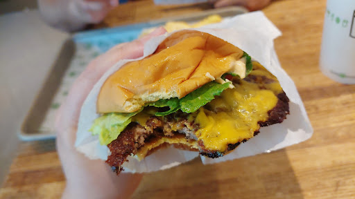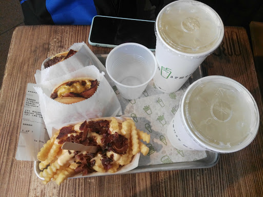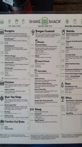 Shake shack was OK. Nothing to write home about. Im told it really became popular because it was in Madison Square park, and its a cute outdoor place to eat. Thazzit. I dont know why anybody says it tastes better than IN n Out, cause honestly it tastes like ... THE SAME. No joke. It tastes . THE SAME. So maybe you have a thicker patty, but you also cost more, like 2x more. And its definitely not as good or as filling as a restaurant style burger. So like id either want in n out or a restaurant style burger. I would eat five guys over shake shack anyday. Because at least five guys is juicy and greasy! Maybe i need to get the shroom burger, but my BMI is about to tip over into the overweight zone and i crumble at putting extras in my already unhealthy food. I DO However. Like their custard. That I would come back for. Wait in line though? No thanks!