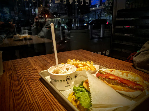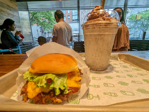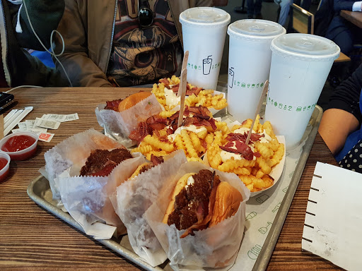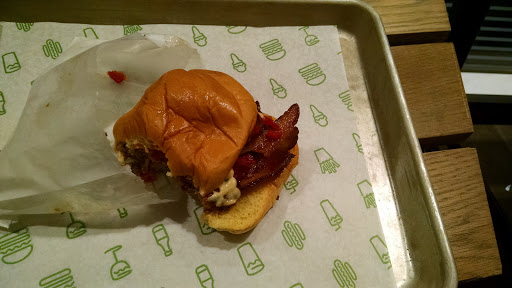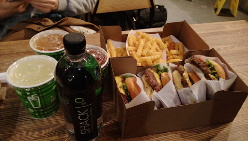 After a long time of hearing the hype surrounding Shake Shack but never trying it myself, I finally got around to giving it a shot, and thankfully at this location I didnt have to experience long lines and long wait times. I have tried the chocolate and vanilla milkshakes separately, but I only found the vanilla to be above average. The chocolate one was just okay to me. Their classic burger was a good simple burger, and I also mixed it up on a separate occasion with a smokeshack double which was very tasty and made better by good bacon. All in all, my experience wasnt a revelation by any means, but the food was food. I can see it as something I may get every few months.