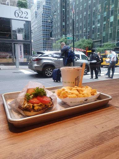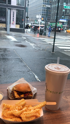 I was apprehensive about trying Shake Shack when I realized Id have to wait in line for quite some time. However, it was worth the wait! The burgers are juicy and full of flavor! I also ordered a chocolate milkshake and wasnt disappointed! It was rich and thick. You do have to pay extra for whipped cream though. It wasnt super expensive, yet still seemed a bit pricey for the amount of food you get.