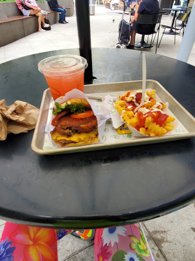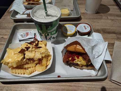 Definitely an over-hyped burger chain. Good food at a fairly quick pace, overpriced. Fries should be a staple item at a burger joint but they are lackluster with cheese of the Velveeta lineage or something when you get cheese fries. They really are sub par. Again, decent enough spot for burgers, fries, and shakes but nowhere near worth waiting in the long ass lines you generally find. Five guys destroys this place hands down. Danny Meyer should stick to upscale dining and stop with the money grab fast food biz if its gonna be mediocre.