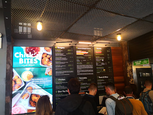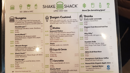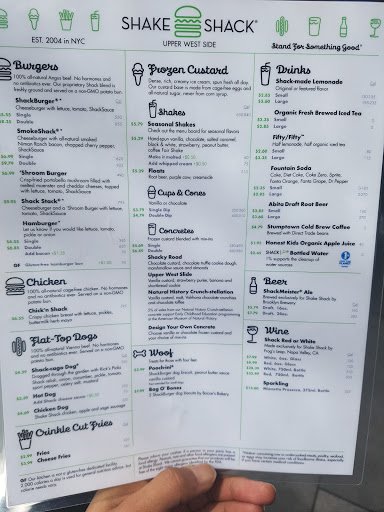 Im sure at this point everybody knows what the food is like at Shake Shack. I liked this particular location for a few reasons. The first thing is how great the staff were. All of the staff has a smile and genuinely seemed to be happy to help. If you look lost for even a second they all of they can help you and start to suggest where seats are free/directions to bathroom etc. Above and beyond. This location is also very convenient to the natural history museum and Central Park. The seating on ground floor is really great. There arent a huge number of seats in the ground floor, but the ones that they do have are against a long window which runs the length of the frontage of the restaurant. I sat at one of these tables and it was a very pleasant place to eat while looking outside. There are additional tables downstairs in the basement level, as well as bathrooms down there. I didnt go down there so cant comment on that.