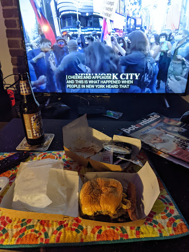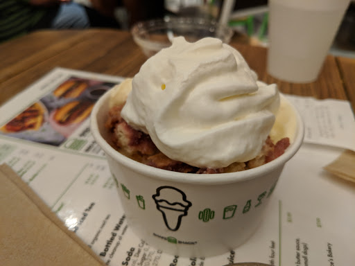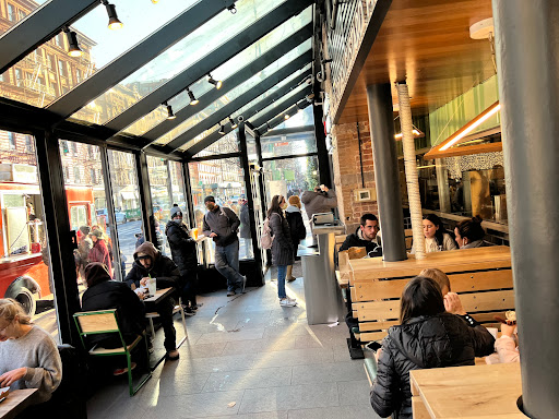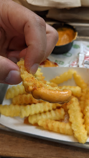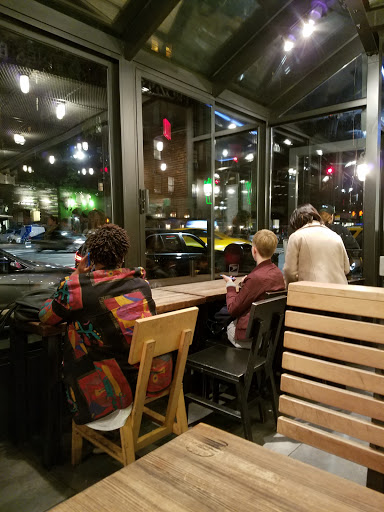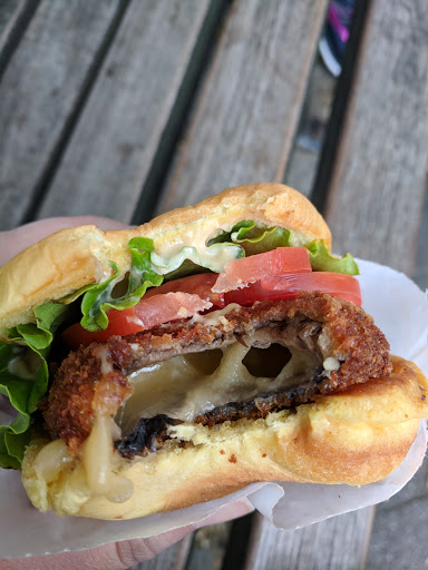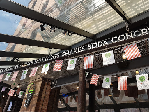 Same awesome menu as their other locations. Although this places seemed particularly crowded just times I visited. I tried the burger with the deep fried mushroom for the first time and total fell in love! It was absolutely stuffed with cheese that was perfectly melted. The panko breading was crispy - a great balance to the gooey inside. I think that next time I would add bacon, simply because I can. Theres a restroom and additional seating downstairs. But because there are only two single restrooms, I line is likely to form and run up the skinny set of stairs. Dont forget to check out their special concrete or milkshake because different locations offer different flavors. When I visited, only this location was offering a concrete in honor of the current Shakespeare in the Park Play that was only available for that month. So fun! I would also recommend the Bacon Cheese Fries!