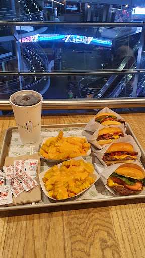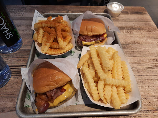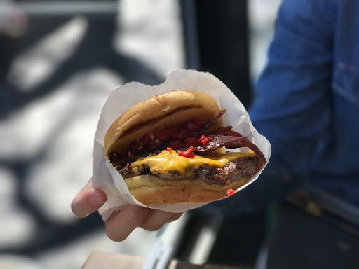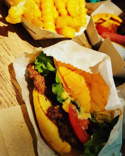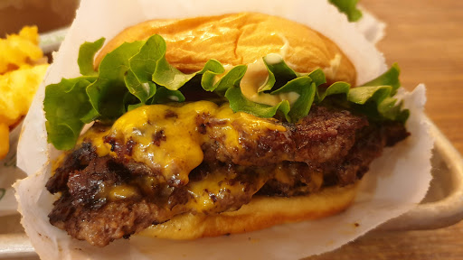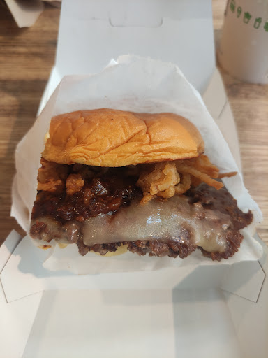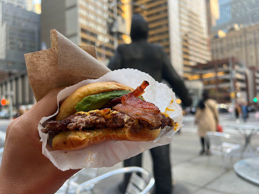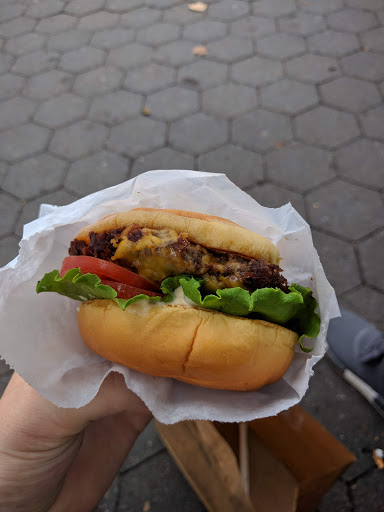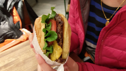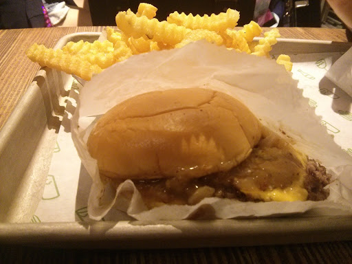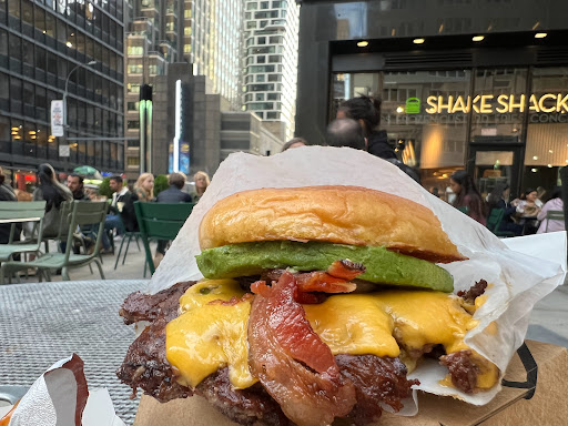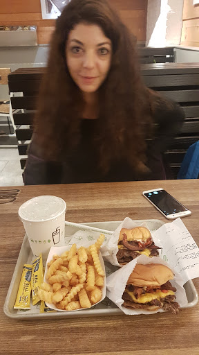 I am a burger fan. I like burgers. Do you like burgers? LETS GO BURGER HUNTING THEN? Enough sillyness. I actually had my first Shake Shack burger for the very first time today, and met me say I am very satisfied. I ordered the Double Smokeshack burger. It is a double patty burger thats cooked to well done with this awesome chipotle tasting sauce(may its chipotle), and bacon. Meat lovers choice! The burger isnt huge, and it isnt tiny. The bun isnt cooked, toasted, or anything special, but it did not take away from the burger. My burger ran me $10 after tax, and I wasnt bloating after, but it was satiating. The decor. Inside the Shake Shack are small booths and counters with seats. The seating could hold perhaps 60 people at max, however this includes the basement. Its not a very big place and during lunch or dinner, that baby is packed. The interior is mainly a wood style design and very clean and classy. The employees are very nice, but dont be a dick and take advantage of them. I guess I should have ordered a shake. It IS"Shake" Shack. Oh well. next time. Oh, and if you have a dog, dog food is sold as well. This isnt a joke.
