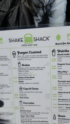If youd rather not stand in long lines in Madison Square Park or youre on the Upper West Side looking for an affordable bite, may I recommend Shake Shack if you havent already thought of it. Soft, pillowy (potatoy or eggy) hand split buns, crisped burger meat, melted cheese and fresh toppings make this better than the average burger. I wouldnt go all out and say its the best burger ever. It is perfect for fast food. Its deeee-licious. I ordered the Shack Burger, which is about $1 more than the regular hamburger. The Shack Burger includes cheese and Shack Sauce minus the onions. The regular hamburger omits the cheese (obviously) and Shack Sauce but has onions. Is the cheese and sauce worth the extra $1. Yes. The regular hamburger isnt shabby, but if youre wanting some cheese $1 is too much, but throw in sauce for that $1 and you got a deal. That is, I felt like it was a deal. The seasonal Strawberry Lemonade was refreshing and a nice accompaniment to the savory bites. We didnt order the fries, because they seemed like standard frozen crinkle cut fries. Along with the burgers, we split a Shack-ago dog. The split and grilled hot dog was a nice rendition of the Chicago hot dog. Its missing poppy seeds and neon green relish. Also, it was a bit too wet from the non-neon green relish. It can hit the spot, if youre really missing a Chicago dawg. Overall good experience and worth a revisit. People thought this was: