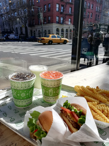 Probably the best fast food option in NYC. Not only are ingredients several notches above most chains (Ive seen their meat deliveries from a butcher that supplies to many of the finest restaurants), but the Shake Shack burger is consistently seasoned and assembled. It looks great, too, as compared to other burgers. For me, seasoning is too strong (read very salty), but Im nitpicking. Shakes, and "concretes," are extra thick, if very sweet. Sadly, the fries are frozen for the sake of consistency. I prefer a freshly-cut fry, even if each batch is a bit different, but apparently Im in the minority. This location is very pleasant, with plenty of outdoor seating directly across in the MNH park. Indoor seating is very limited, though there is a downstairs room. Avoid rush hours, as the line snakes out the door. A quick note on my rating scale: 5 stars = exceptional food & service; 4 stars = excellent food & service; 3 stars = decent to good (top-of-the-line for fast service restaurants); 2 stars = mediocre; 1 star = not recommended.