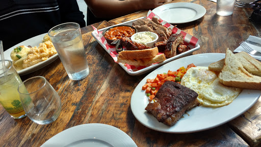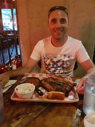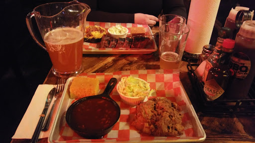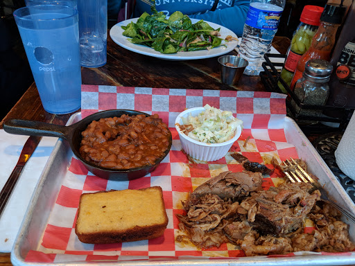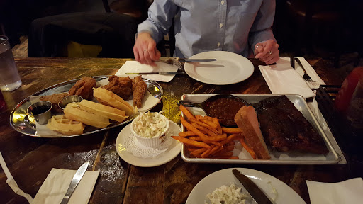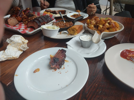 The moment I walked into this place, I knew I wasnt going to be impressed. The two hostesses that were on duty were somehow too busy to even greet us. One was one the phone, which is understandable, but the other shuffling papers at her station and barely took the time acknowledge our existence. When she finally did, we were rushed to our tables without so much as a smile so she could go back to whatever she was doing, because that obviously more important. The concept of "Southern Hospitality" was obviously lost on these two. Our server was fairly attentive, he checked up on us regularly however our food took longer than expected to come out. Normally this wouldnt be a big deal if it was busy, but there were only four or five other tables seated besides ours and only a few people at the bar on a weekday so there wasnt exactly a dinner rush. Also, this is barbecue, which is presumably cooked earlier in the day so it just has to be prepped and served. The both of us were scratching our heads as to why it was taking so long. When the food finally did come out, it was dry and flavorless, like it had been sitting under a heat lamp for an extended period of time. I had the brisket and a side of ribs. Both were dry and tough and needed lot of BBQ sauce to give it any kind of flavor. My friend had the pulled pork, which looked incredibly dry and totally unappetizing. Oh and did I mention that this place is expensive? The quality of the food definitely does not warrant the price by any stretch of the imagination in my opinion. We paid about $35 per person to be completely disappointed. On our way out, the one hostess was remarkably- again- too busy to say good bye to us as we walked out. Let me be clear - I dont like this place. Ill never come back here. If youre in the mood for barbecue, theres other places in the city that have better quality food and way better service for sure. Brother Jimmys BBQ and Mighty Quinns Barbecue come to mind. If youre just hungry and in the area, Id suggest going across the street to 5 Napkin Burger.