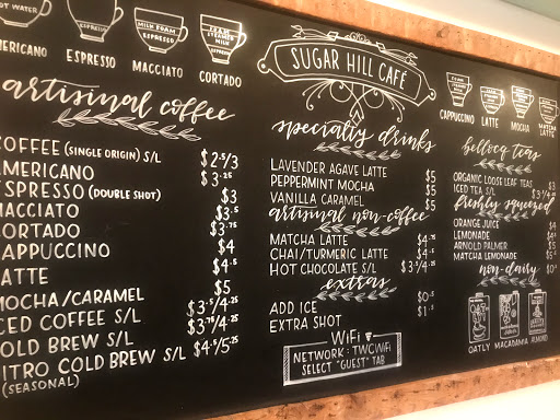 Great drinks, baked goods, and sandwiches. Wifi is bad though, you get 1 hour free on the TWCWifi, and it doesnt work with VPNs and drops the connection constantly. They said the "SUGAR HILL CAFE" wifi is for the cafes use only.