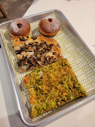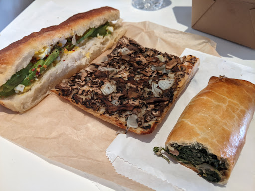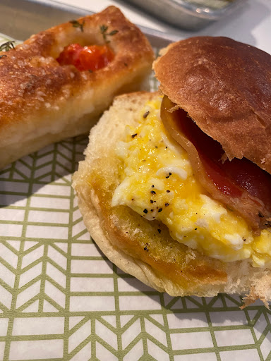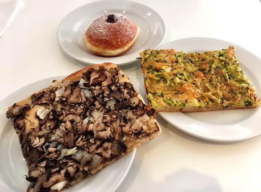 Ive heard so many people raving about this place that I wanted to try it out myself. We had lunch there with my husband on Sunday - hubby is a huge bread-lover so he had high hopes. The place itself doesnt really appealing from the outside, and when we entered I felt odd: the breads and all the food look gorgeous, but the tables and the sitting area where we finally sat down was kinda creepy, I felt like I was sitting in a school eatery... We ordered 2 slices of pizzas, a bomboloni, and two sandwiches. The staff is kind and friendly, we got our freshly made scrambled egg sandwiches quite quickly. Both sandwiches were great, the Formaggi was really full with cheese, but the Verdura one barely had any veggies. Anyways, the scrambled eggs in both sandwiches were phenomenal! Sadly the pizzas were mediocre and cold. The bomboloni in reality is a very good donut - the dough is absolutely perfect, but I was a bit disappointed as I was hoping for more filling, but theres only literally just about a teaspoon of it in the donut. For almost $4 is definitely not cheap, and the place itself is on the pricey side in general too. I saw more interesting dishes on the menu, so I would go back to try those as well.