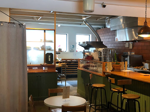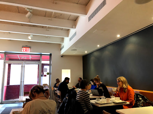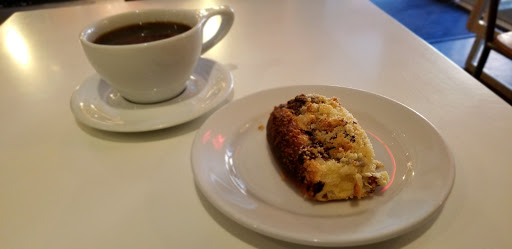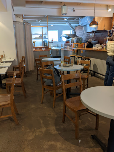 Unusual bakery with fancy tables and counter seats. Great baking goods, good coffee, good pastries, great breakfast-sandwiches, good stuff and bad location. Good all together.