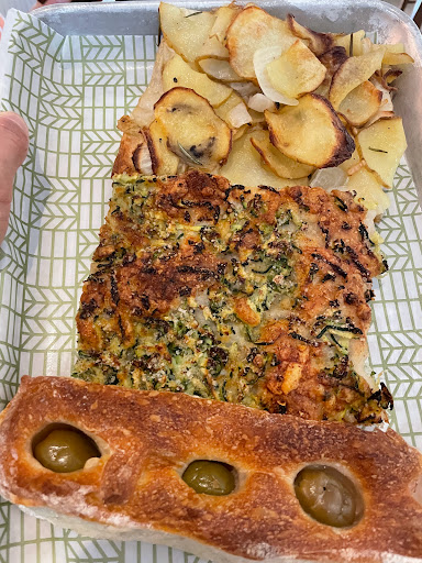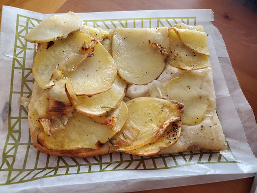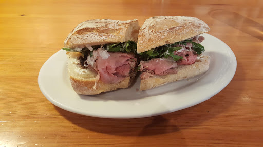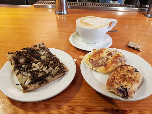 living close to this place I must say they have some delicious food items. I like to eat in and have the delicious egg sandwiches with nice strong coffee. The Coffee mocha is one of the best I have ever had. The bread is one of the best you can buy and their Pizza is mouth watering. I like the potato Pizza myself but they are all good. This is a casual bakery and they will bring you the food to your table after you order from the counter