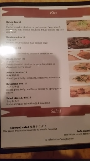 The inside is not very large, as soon as you walk in, there is a counter seating to the right, where you can see the kitchen, and just a few small table seating to the left. I always like those restaurants that let customers to look into the kitchen. I think that makes them more honest and also, they have to keep it rather clean. There is more table seating at the back, after you pass the counter, with larger tables. Even with all the available seating, it is not very big, and the space is narrow from front to the back. I believe there was not a single Japanese staff here, which is always a bit disappointing at a Japanese restaurant. We started off with hot Green Tea and our waitress told us that the tea is $2 each. Some Japanese restaurants offers green tea for free, so it is good to be warned that the green tea is not free here. Their food is pretty good, tasty and reasonably priced. At the end of our meal, we finished our food, content with everything, other than service, or lack of. We had to ask for refill on water and hot tea a few times, and also for the bill. No one really came to check on us while we were there. Then, when we tried to pay with credit card, we were told "our credit card machine is broken today, can you pay (with) cash?" We were so shocked to hear this, I mean, if they know that their credit card machine is broken, shouldnt they inform their customers when they come in, so that they are prepare at the end of the meal??? We dont really carry cash around, so we didnt have enough cash to pay for the lunch. The waitress simply told us to go an ATM machine. And it happens that it was one of the freezing cold day... My husband had to walk in a cold for like 10 min one way to get cash from our bank ATM, which was not pleasant. While I was waiting for him to come back, another customer came in and placed a to-go order. As she waited for her food, the same waitress brought her a bill. When the lady handed her a credit card, once again, the waitress told her about their credit card problem and that she needs to pay in cash. The lady was of course shocked, told the waitress "ok" and left, and never came back. She probably didnt want to bother going to find an ATM and walk all the way back in the cold. Very disappointed with the service. Food is still good but not sure if it is worth the negative feeling you are left with after the meal, Read my full review of the restaurant and food on my food blog, foodlovergirl.