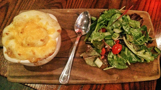 This place is a hidden gem and the food is actually super good. I got the Apple and Goat cheese salad, but subbed avocado in place of another topping and they were totally accommodating with my modification. It was a nice peaceful atmosphere on Sunday night. However, they also have a huge bar and great happy hour during the week.