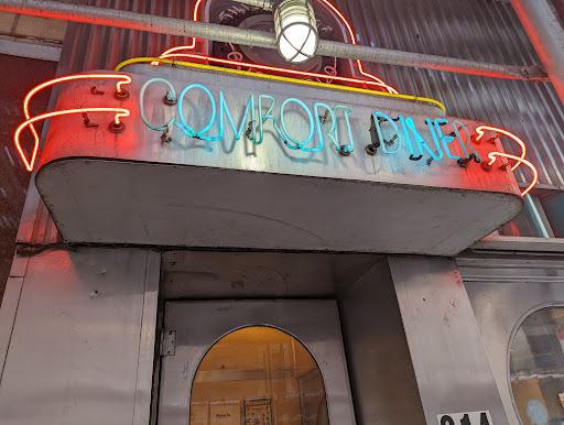 I really enjoyed The Comfort Diner... It was my first trip to NYC and when we walked in its like I was in a movie, to walk into a place so good it cant be real... Service was SUPERB!!! On top of getting the biggest glass of Apple juice from a restaurant ever.. The food was amazing. My nephew and I had pancakes and eggs with sausage and potatoes. It was the best pancakes Id ever eaten and my nephew agreed. Idk how but the perfect mix of crisp and fluffy with an unmatched flavor profile it simply was the best!!