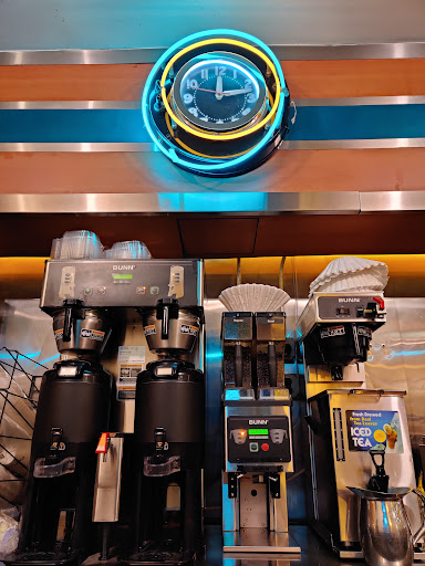 Original Diner-Flair. Bedienung sehr nett und schnell. Etwas laut, aber normal für USA. Wir hatten 3x Frühstück (B.B.C) und die Pancakes. Absolut americanstyle Frühstück, sehr lecker und reichlich. Kaffee schmeckt mir. Leider kein Latte Machiatto. Vor 8.00 kaum Wartezeit. Bei mehr als 3 Personen verlängert sich die Wartezeit! Da wir 3x da waren 100% Empfehlenswert! Günstige Preise.
